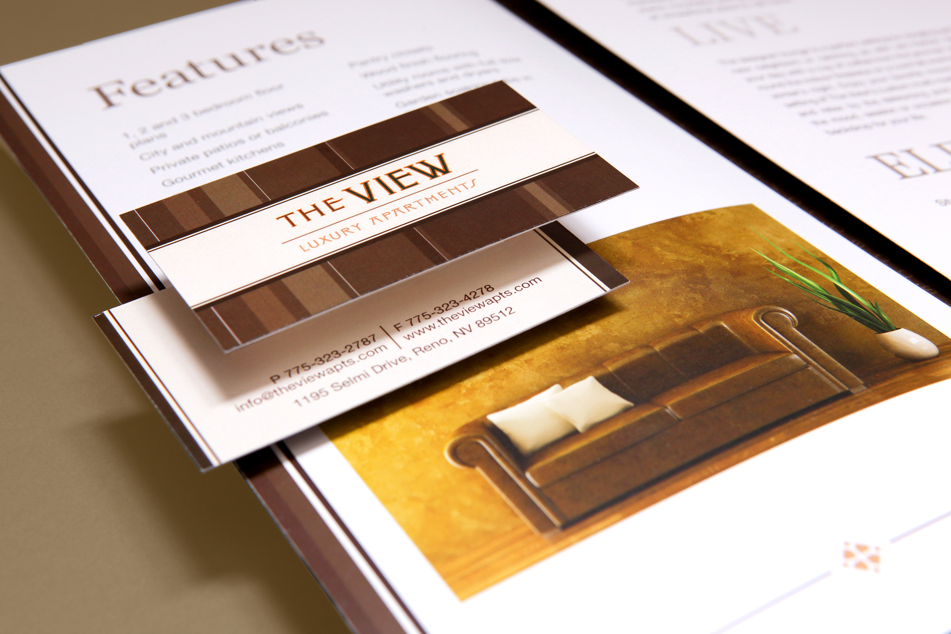 A branded marketing kit we designed for a luxury apartment community in Nevada.